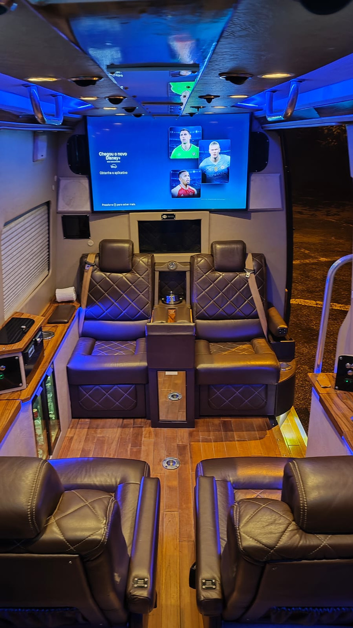 •Na opção 7+1 não há banheiro permanecendo 3 assentos confortáveis ao fundo, 2 no meio e 2 de costas na entrada do veículo.